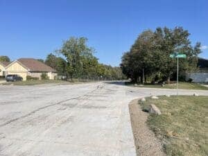 Waiting for concrete to obtain strength in the southwest corner of Charlwood Drive and Whitehouse Court.
