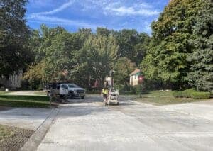 Removing miscellaneous sidewalk panels, prep and begin pouring concrete in the Rookery Woods subdivision.